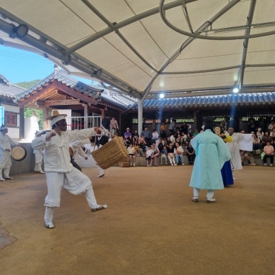 마지막에 배우들이 탈을 벗고 인사하는데, 생각보다 연령대가 있어 놀라웠다. 그만큼 전통을 이어가는 의미가 느껴지는 순간이었다.